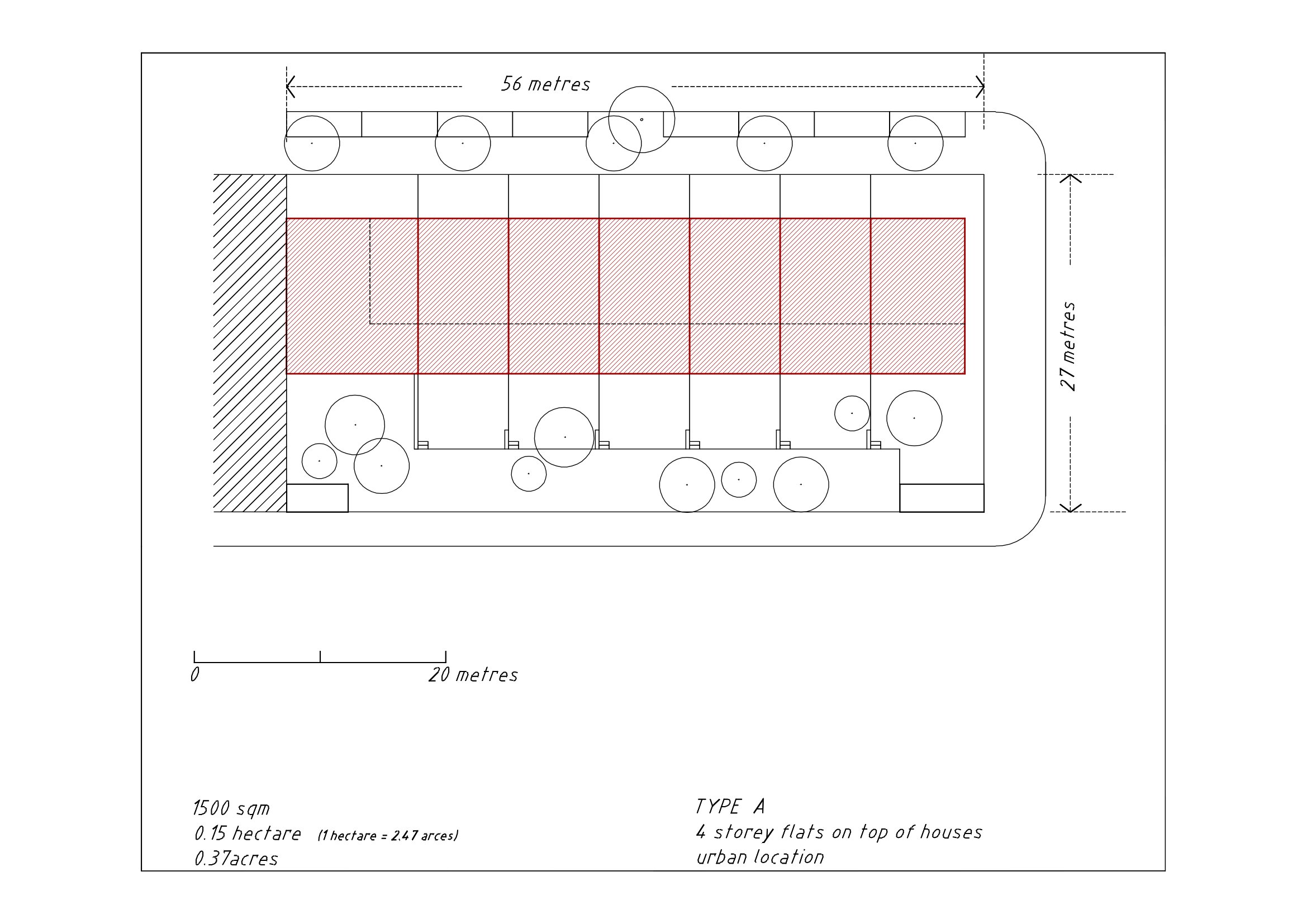 A visual example of a potential scheme is shown to the left. This drawing was based on a city centre location in traditional Belfast two-up two-down style, where on-street parking and road infrastructure would not be required.